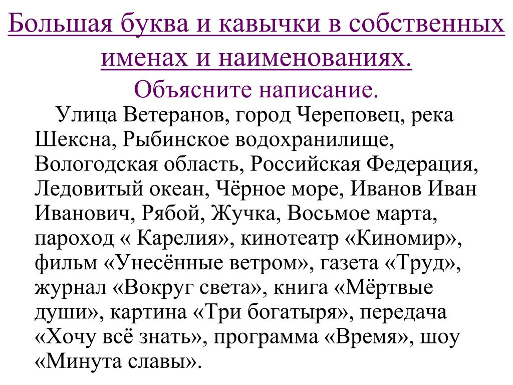 Название организационно-правовой формы (закрытое акционерное общество, общество с ограниченной ответственностью и др.) пишется со строчной буквы; фирменное наименование организации пишется с прописной буквы, и, как правило, заключается в кавычки: закрытое акционерное общество «Восток», открытое акционерное общество «Сибнефтегаз».