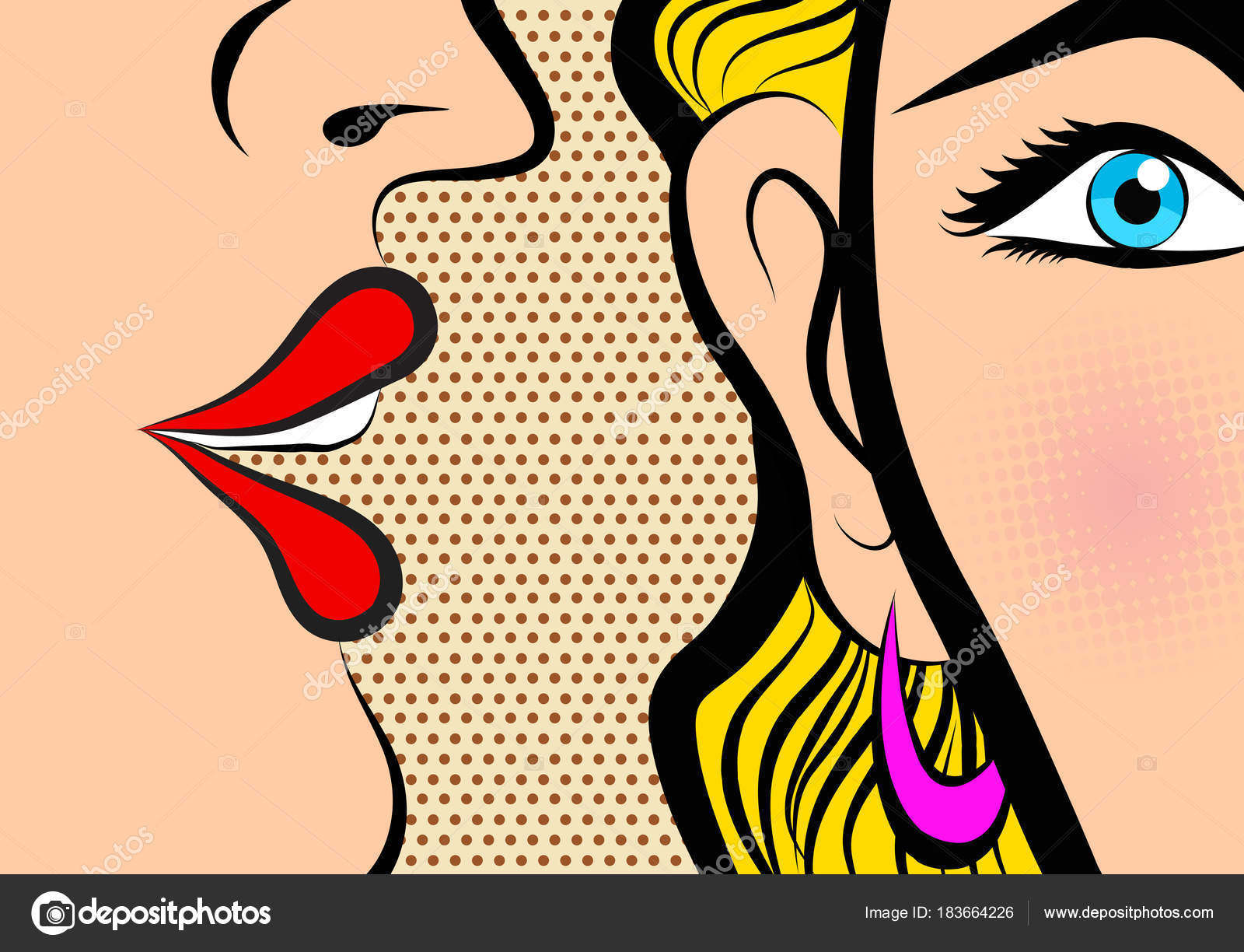 женские светлые волосы и подмигивающий поп-арт