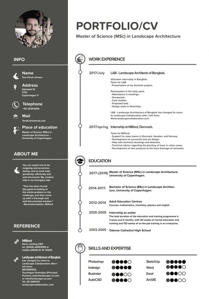 У Лили очень клево подан таймлайн профессионального развития в иллюстрации в разделе About — это выглядит впечатляюще.
