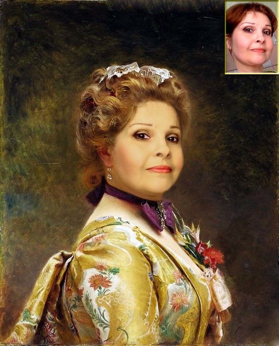 Эти работы требуют гораздо больше времени и затрат, поэтому не каждый может позволить себе сделать столь дорогой подарок. Обычно эти работы выполняются художниками в течение месяца, зато вы сможете получить картину, пропущенную через творческую душу живописца, его интуитивное понимание сути человеческого характера портретируемой личности и знание малейших нюансов игры света и тени, столь важных при создании портрета. - Создание изображения с помощью электронной кисти и особых программ многоуровневого фотомонтажа и его перенос на полотно виде печати на холсте с полной имитацией фактуры красок. Для данного вида создания художественного изображения по фотографии характерны быстрые сроки выполнения заказа (течение 1-3 дней), бесплатное макетирование, участие заказчика в создании полотна своими комментариями и замечаниями, а также намного меньшая стоимость.
