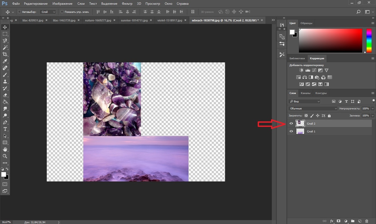 Чтобы создать пустой слой, кликните на квадратик с плюсом внизу палитры Слои. После этого можно ставить его в режим наложения Цвет / Color / Иллюстрация: Елизавета Чечевица