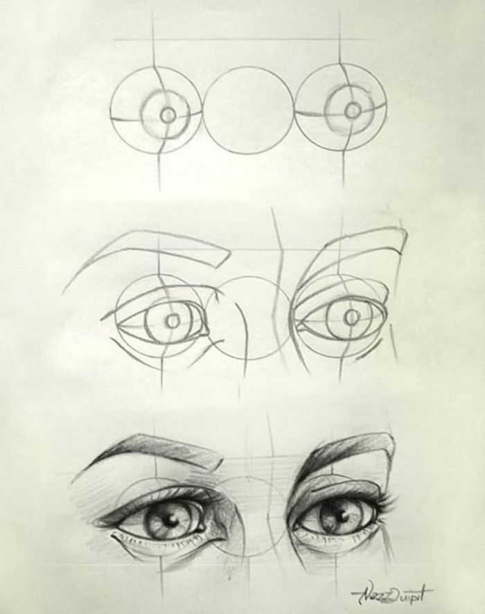 Обязательно нарисуйте очень легкие вспомогательные линии, так как большинство из них будет стерто на следующем шаге.