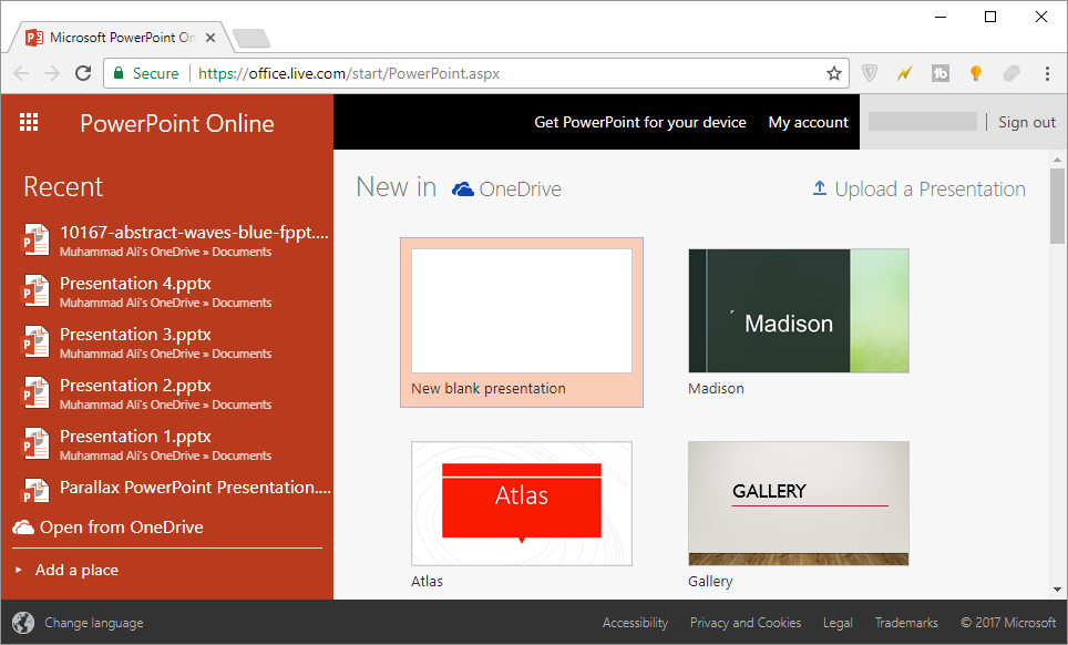 Неудивительно, что Microsoft выпустила веб-версию PowerPoint. В этом онлайн-инструменте есть практически все, что нужно для создания красивого слайда. Он имеет такое же сходство со своим офлайн-собратом. Вы можете добавлять слайды, выбирать шаблон, добавлять анимацию, включать показ слайдов и ряд других полезных функций.