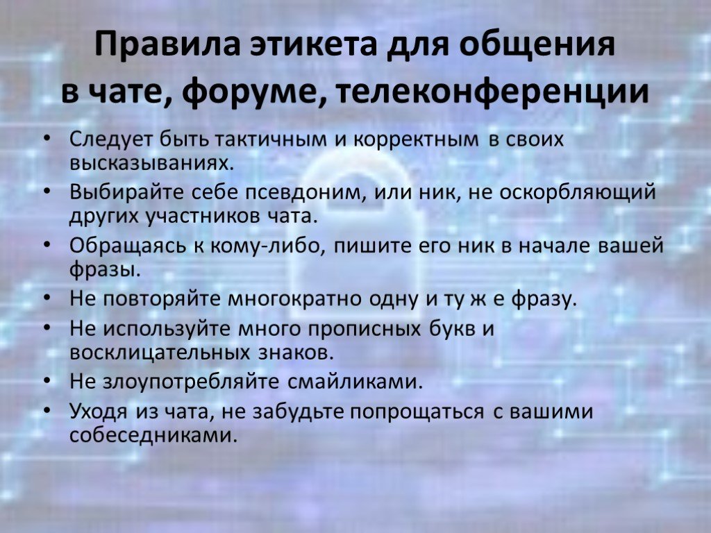 - Писать сообщения с заглавной буквы, используя пробелы и знаки препинания.