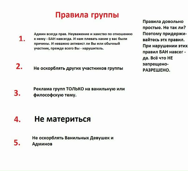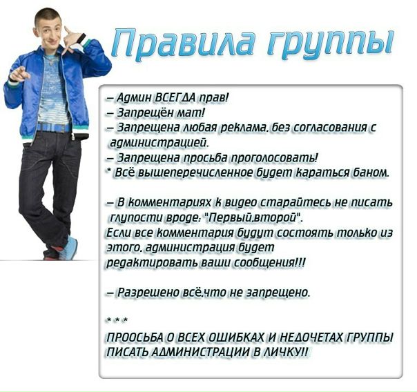Правила для группы ВК