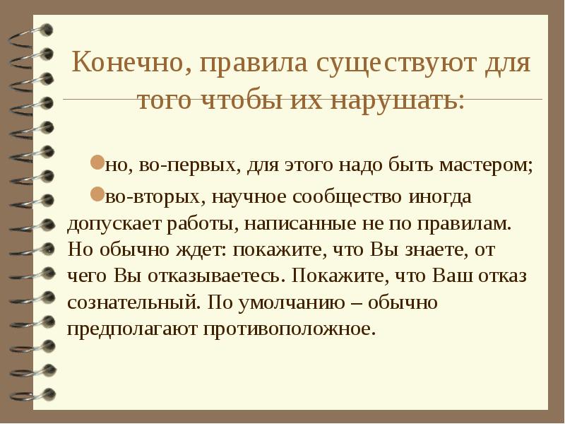 Так что самый лучший совет таков: в основном старайтесь следовать правилам, но всегда задавайте вопрос «зачем».