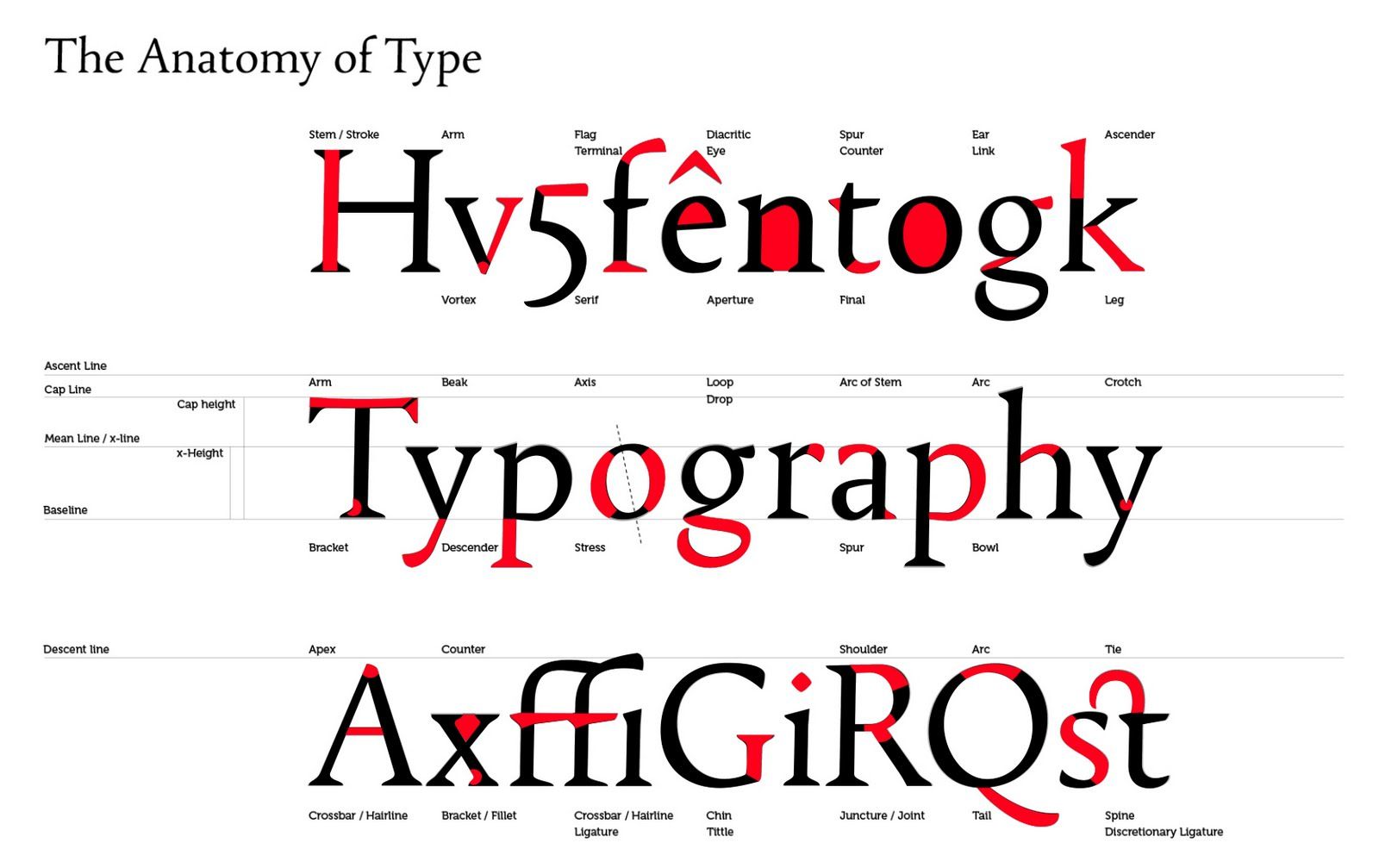 Высота строчных букв без выносных элементов — это расстояние от базовой до верхней линии шрифта, иначе говоря — величина очка строчных. Выбирая шрифты, которые вы хотите использовать при оформлении совместно, нужно следить, чтобы высота их строчных букв была одинакова. Это поможет выдержать одинаковый уровень насыщенности абзаца. Кроме того, такой текст будет легче читаться.