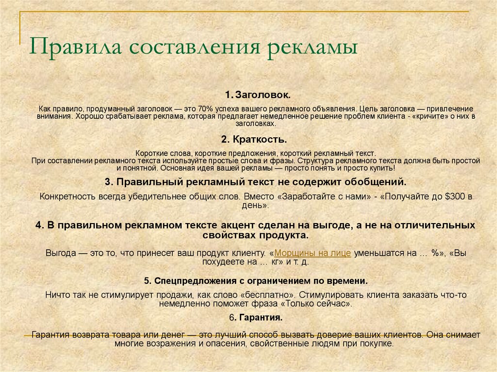 Коммерческая — используется для текстов о продаже товаров и услуг. Вместо основной информации часто делается акцент на потребности потенциального клиента, из-за чего структура текста не всегда логична.