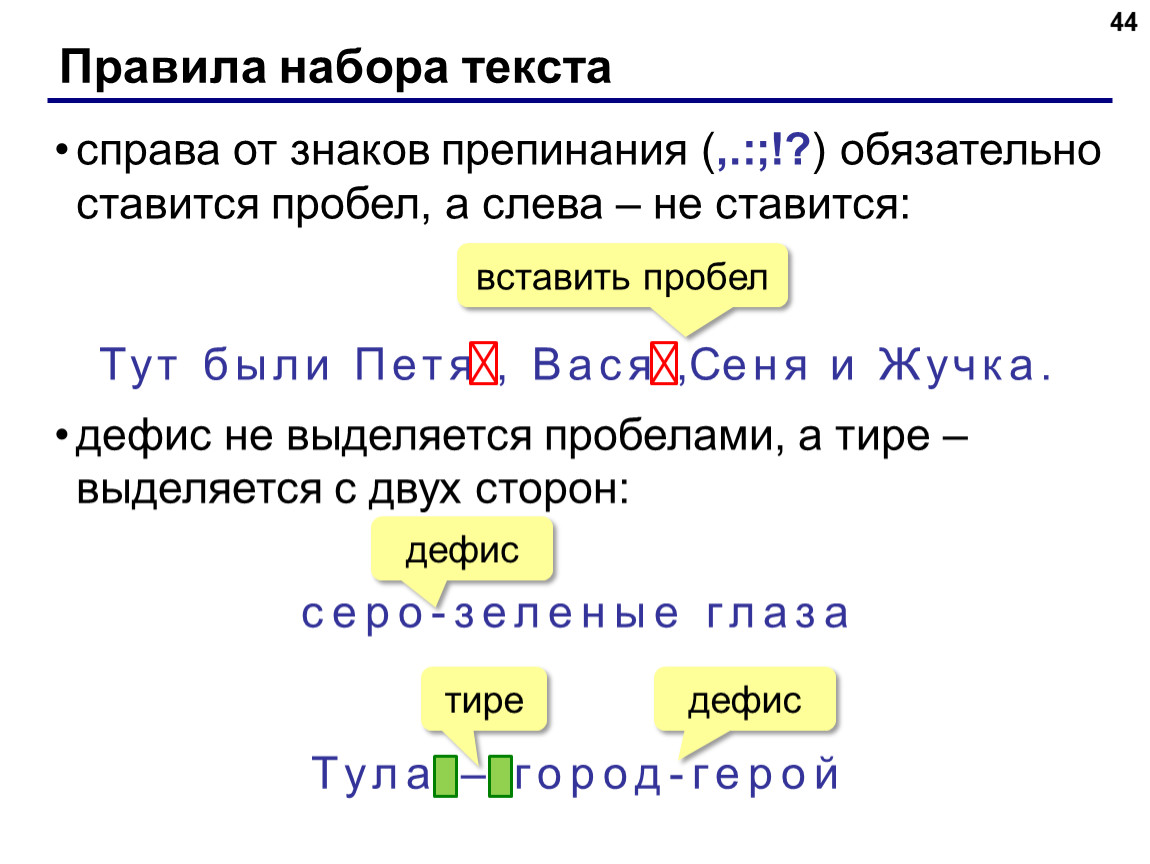 Правила написания текста