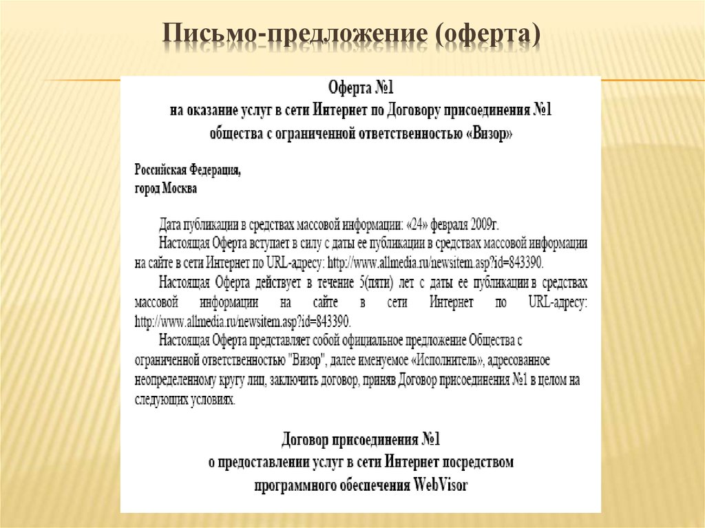 Как написать письмо-предложение. Пошаговый план с примерамиПод предложением о сотрудничестве понимают классические бумажные письма, электронную рассылку, сообщения в мессенджерах и даже видеообращения.Цель такого письма – показать ценность предложения и заинтересовать адресата в совместной работе.