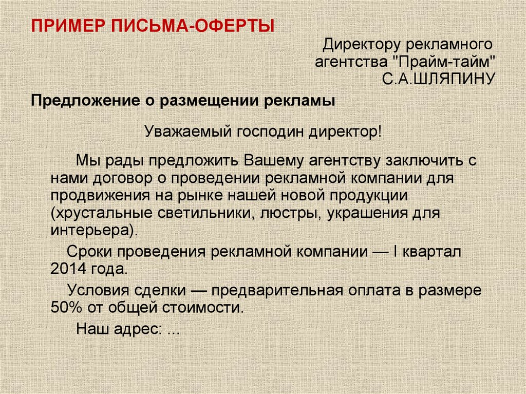 При написании письма-предложения придерживайтесь правил бизнес-переписки.