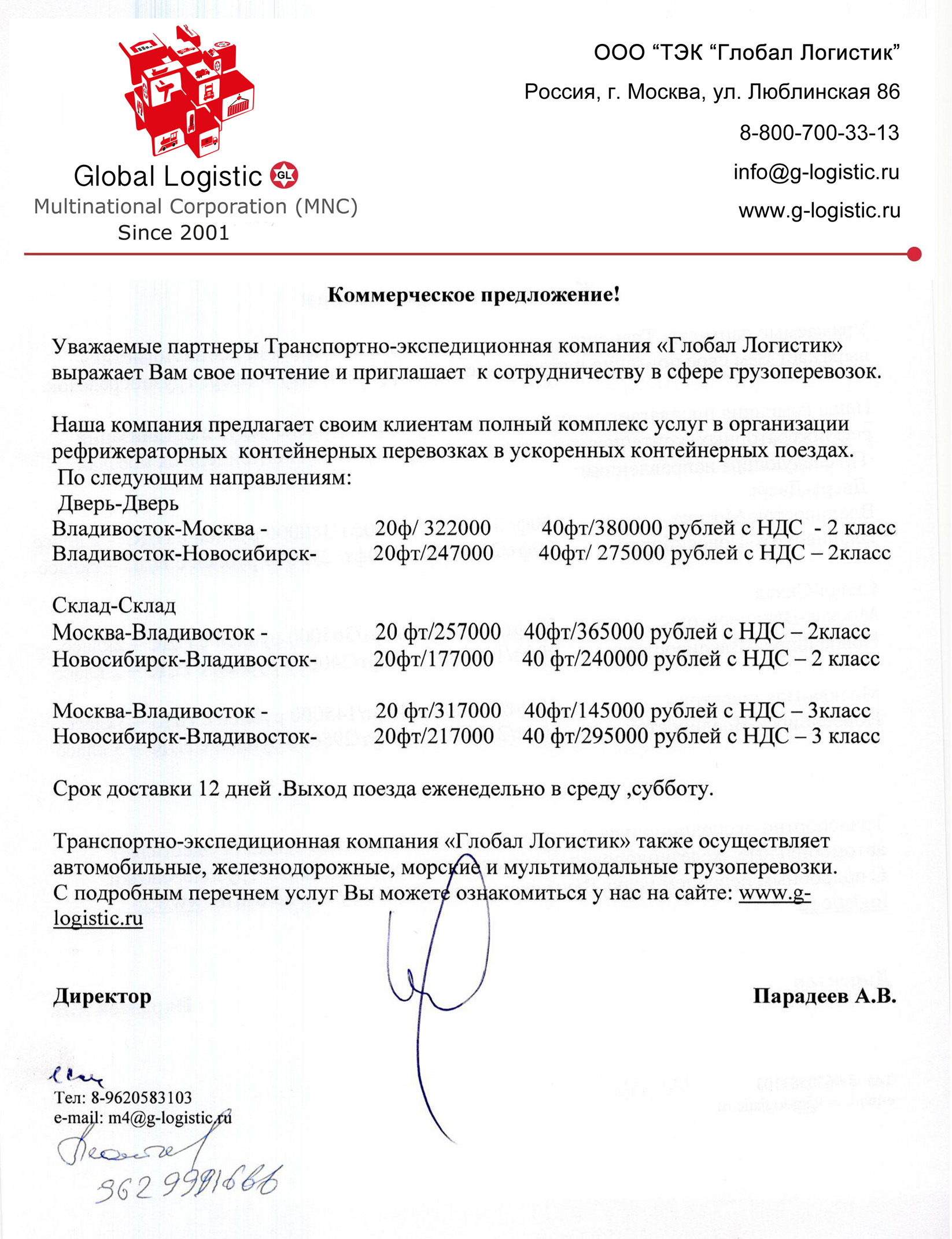 Образец письма с предложением о сотрудничестве на тему грузоперевозок
