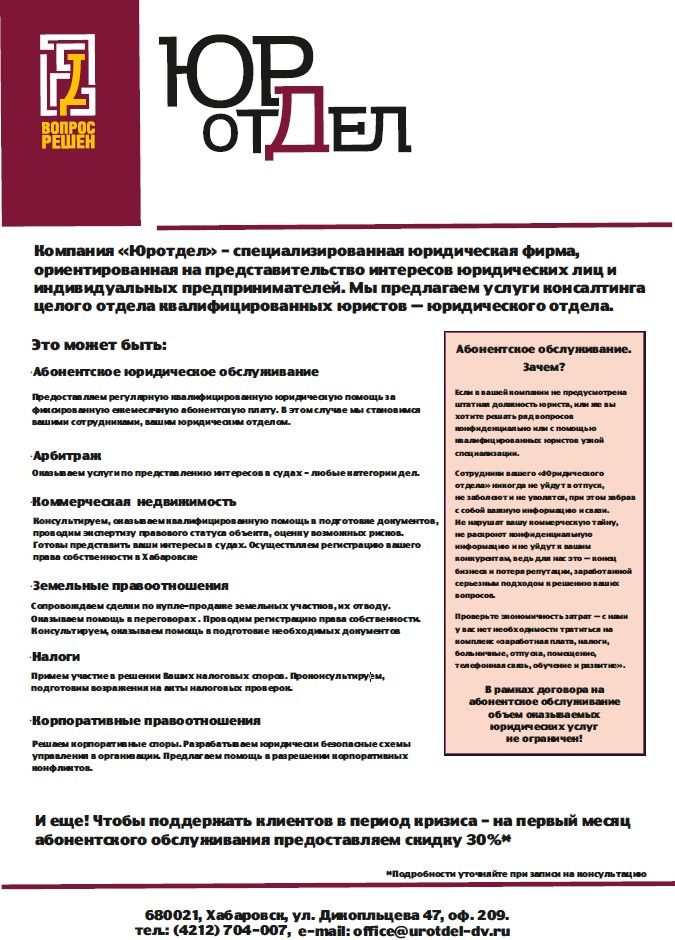 На конференции «XYZ» мы узнали, что ваша компания открывает филиал в г. Ессентуки. В связи с этим предлагаем вам заключить контракт и организовать систему корпоративного питания в вашей организации.