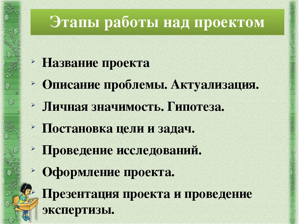 На всех этапах работы над проектом учителю необходимо учитывать психолого-педагогические особенности возраста учащихся и степень их самостоятельности.