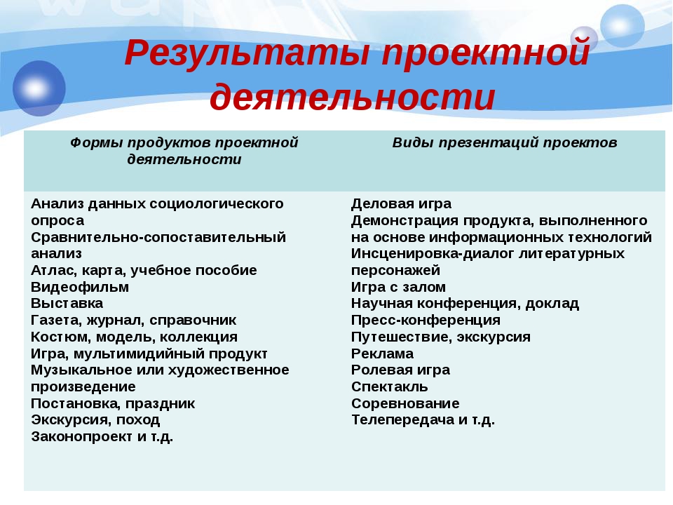 Каждый проект должен завершаться получением какого-либо продукта.