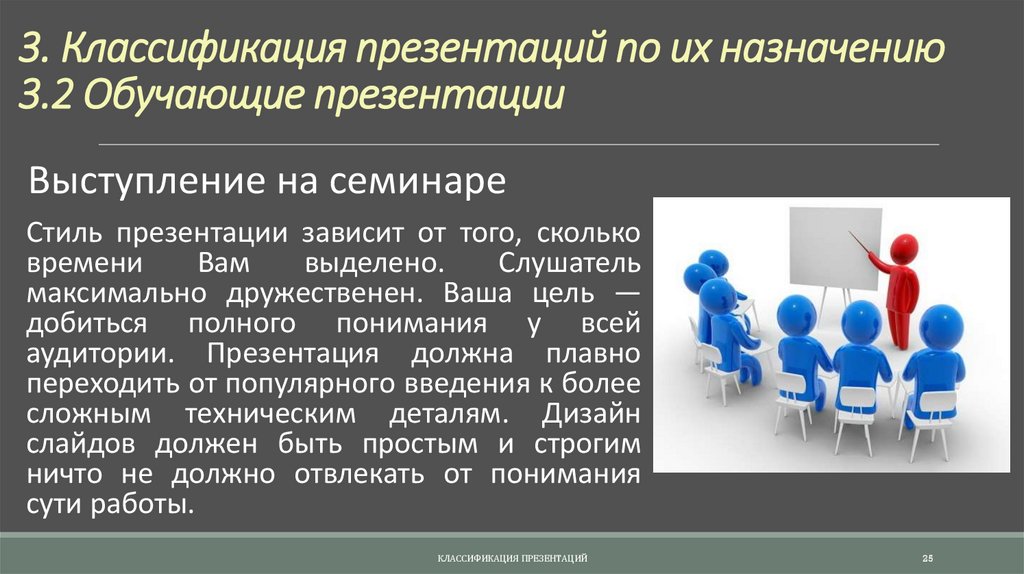 Типы презентаций различны. Они могут быть убеждающими, тренинговыми, вводными, информационными.