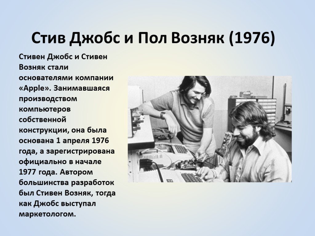 Основатели Apple. Стив Джобс и Стив Возняк