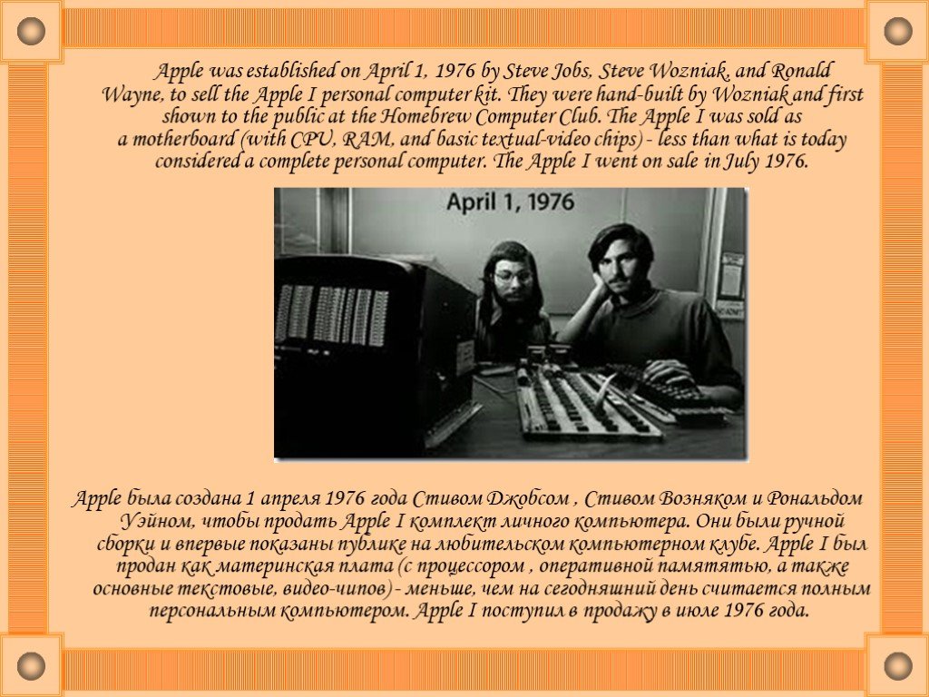 поставили производство своих компьютеров на поток. А 1 апреля 1976 года была