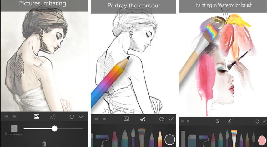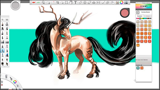 - Приложение содержит огромное количество разнообразных кистей и тонов — до 1000 из них.