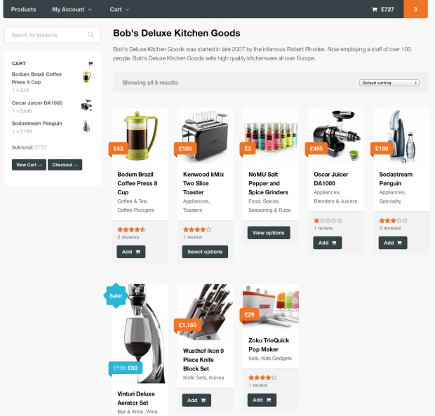 Каталог магазина был создан с помощью WooCommerce (открывается в новой вкладке), мощного плагина WordPress с открытым исходным кодом.