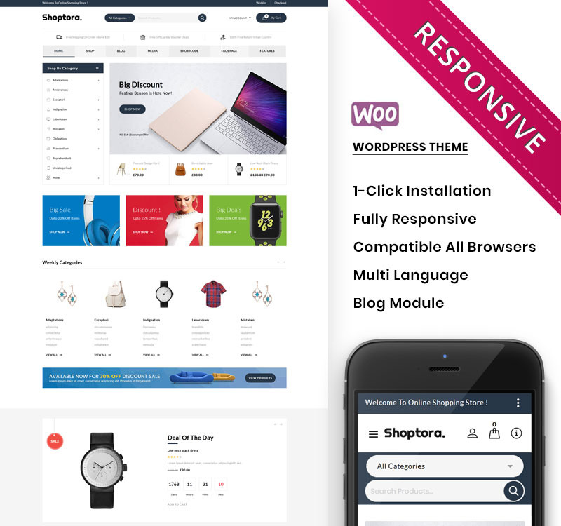 - Минималистичный модульный шаблон для WooCommerce, сочетание простоты и качества