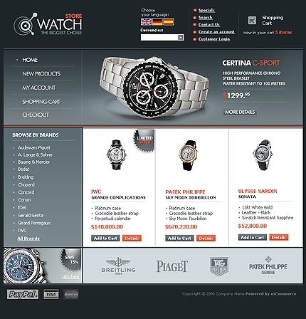Визуальное воздействие не только ошеломляющее, но и показывает больше продуктов, чем одна фотография. Упрощенная панель навигации и черно-белая цветовая схема создают атмосферу элегантности и делают цвета яркими.