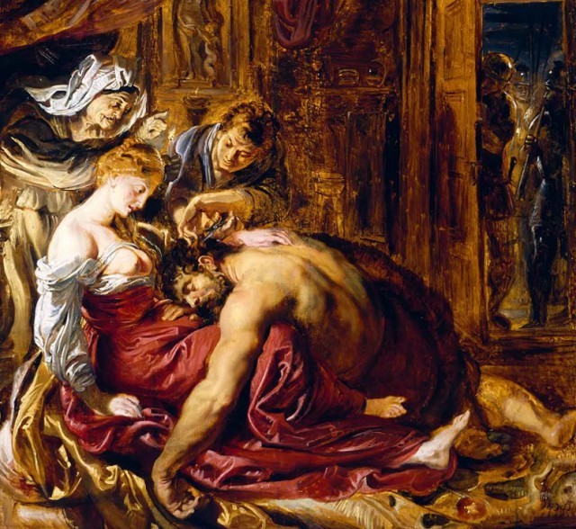 Самсон и Далила — еще одно известное произведение искусства, написанное фламандским мастером Питером Паулем Рубенсом. Это еще одна картина с мифологическим сюжетом, поскольку мы можем видеть Самсона, спящего на коленях Далилы, в то время как молодой человек стрижет ему волосы, фактически лишая его силы.