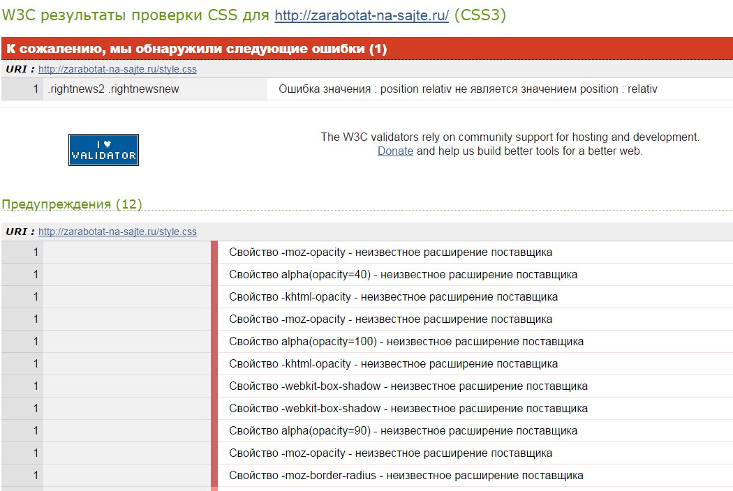 Это официальная проверка на корректность CSS?