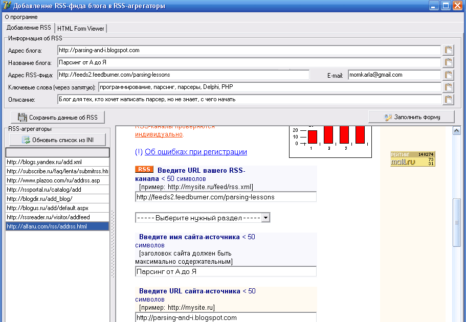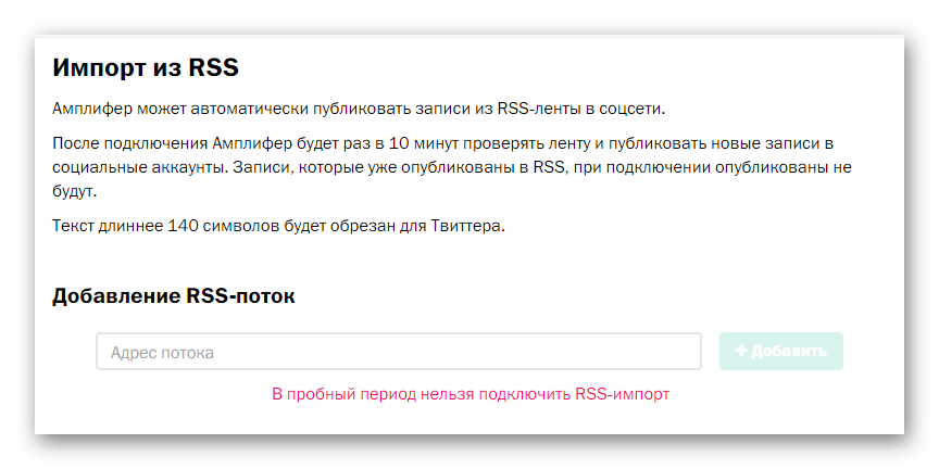 Заметьте, что в текстовую строку нужно вводить адрес фида, а не главную страницу. Здесь у меня проблем не наблюдается и перехожу к следующему сервису.