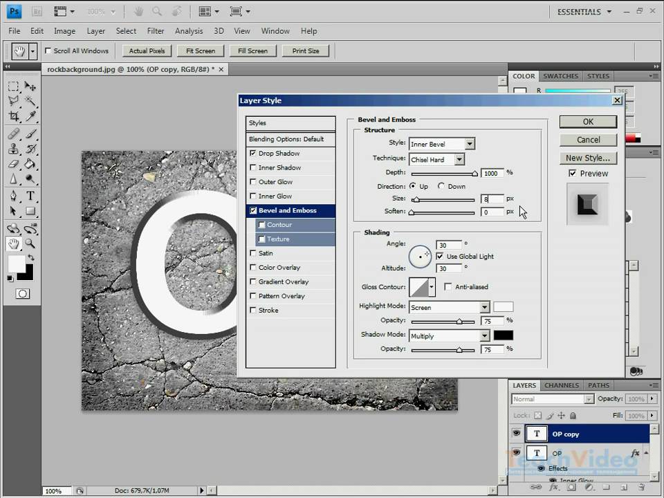 Стили слоя также работают с текстовыми слоями. Если вы хотите добавить обводку, использовать градиенты для цвета текста или добавить свечение или тени, вы можете использовать стили слоя.