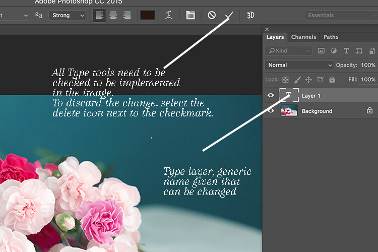 - После того, как вы закончите с текстом, нажмите на галочку на панели параметров. Вы также можете переключиться на другой инструмент, чтобы остановить процесс ввода.