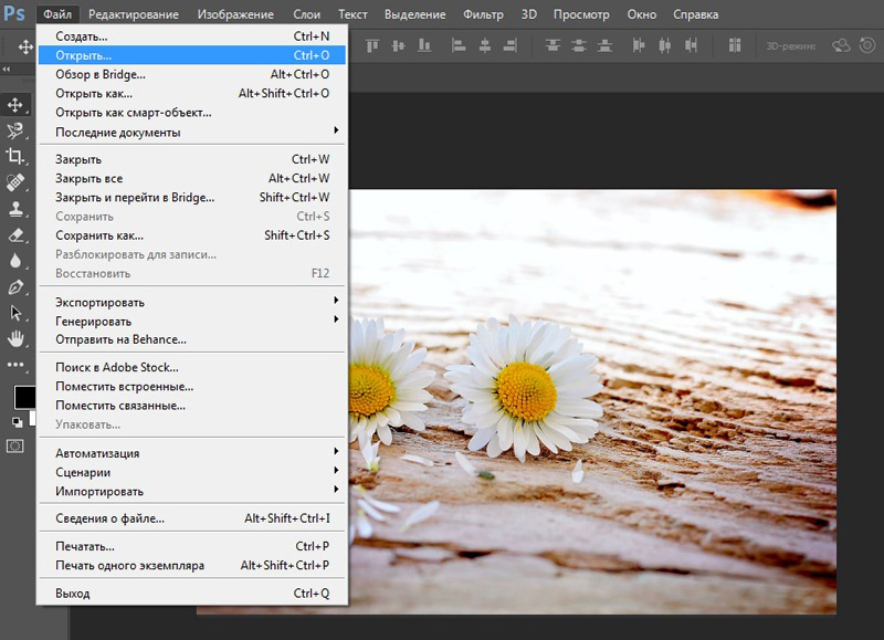 - Создайте новый документ в Photoshop.