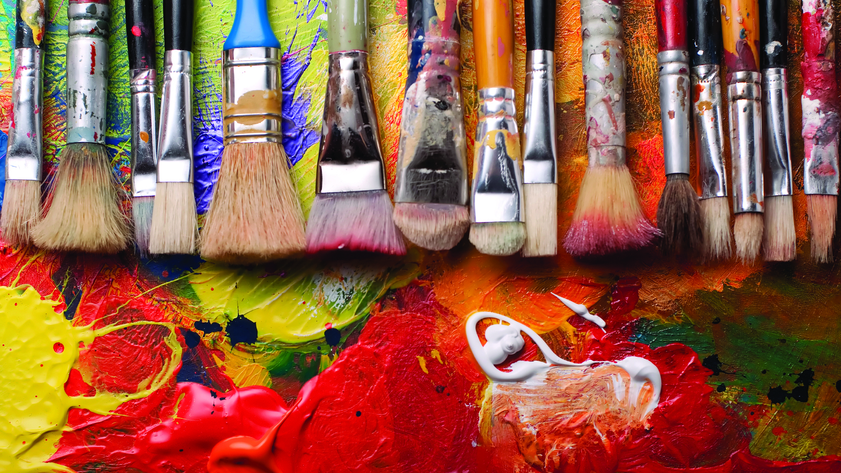 Вот пример мазков, сделанных кистями разной жёсткости, диаметра и разного цвета: