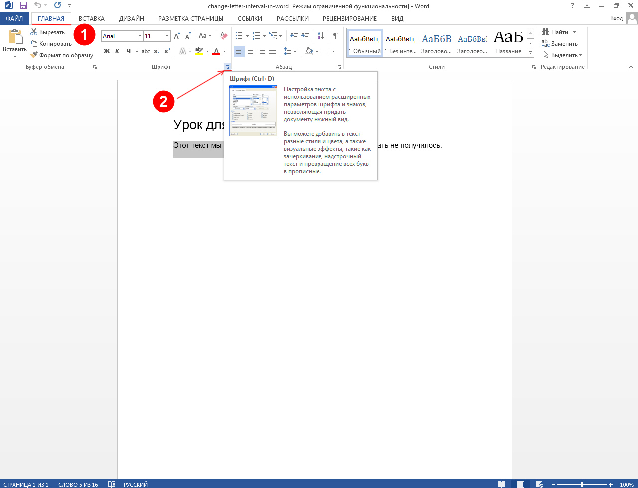 Изменение интерлиньяжа выделенного текста