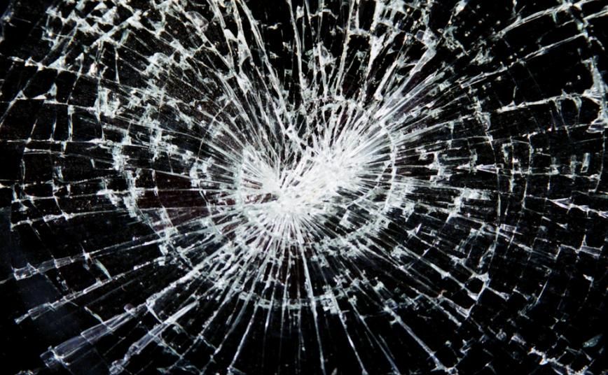 Разбитое стекло на фоне заходящего солнцаPREMIUM