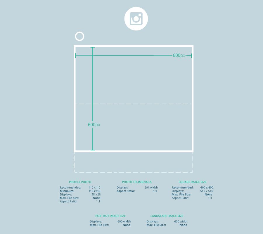 Фотографии профиля Instagram имеют размер 110 x 100 пикселей, но платформа хранит эти изображения в размере 320 x 320 пикселей, поэтому вы должны загрузить изображение как минимум этого размера.