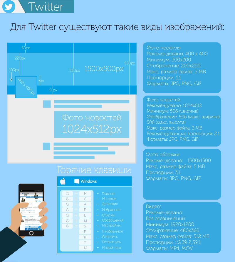 - Размеры профиля, заголовка и изображений в твитах