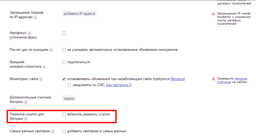 Настройка этих параметров обеспечивает сбор данных о работе рекламы в системах аналитики, а вы можете оценивать эффективность контекстной рекламы, делать выводы на основе статистики и работать над улучшением своих кампаний.