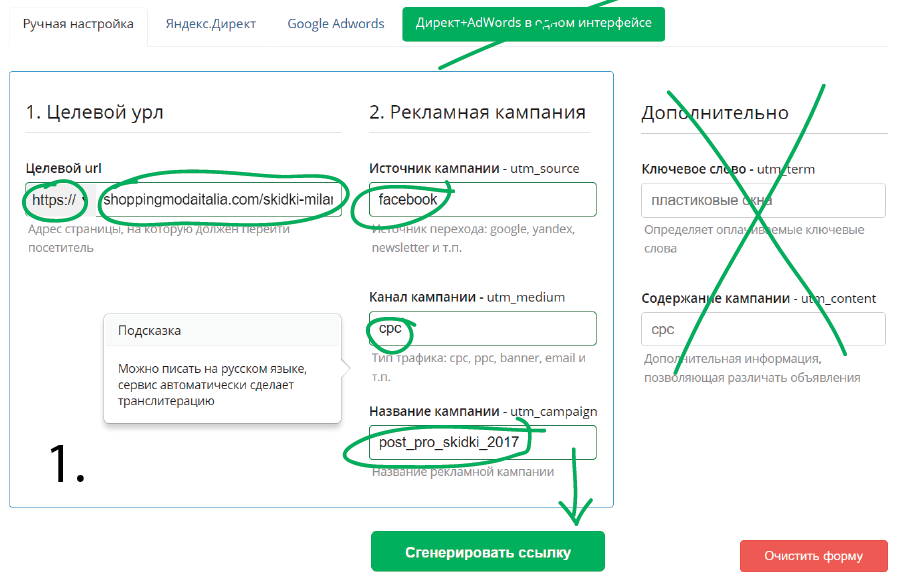 ?utm_source=yandex&utm_medium=cpc&utm_campaign={campaign_id}&utm_content=bs1_{ad_id}&utm_term={keyword}?utm_source=yandex&utm_medium=cpc&utm_campaign={campaign_id}&utm_content=bs2_{ad_id}&utm_term={keyword}И по аналогии с добавлением параметров в обычную ссылку, просто по очереди добавьте нужные значения, заменяя чекбоксы.