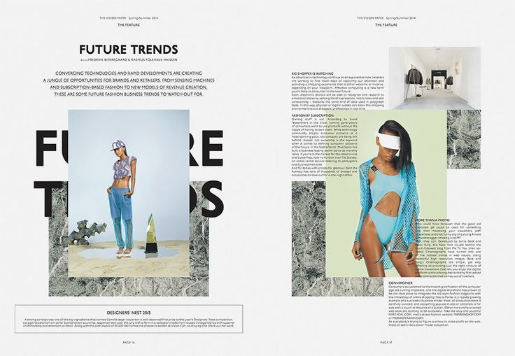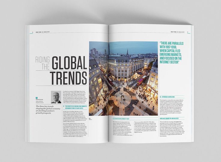 Это тонкий способ предложить своим читателям качественный дизайн, даже если они этого не заметят. Думайте о разворотах, а не о страницах, чтобы убедиться, что каждая отдельная страница хорошо связана с тем, что идет до нее и после нее. Всегда тщательно выбирайте изображения, чтобы правильно предложить предварительный просмотр статьи до того, как будет прочитано какое-либо слово.