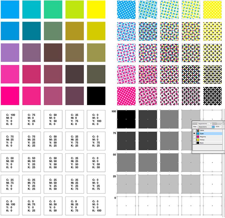 - CMYK – субтрактивный цветовой режим, состоящий из голубого, пурпурного, желтого и черного каналов.
