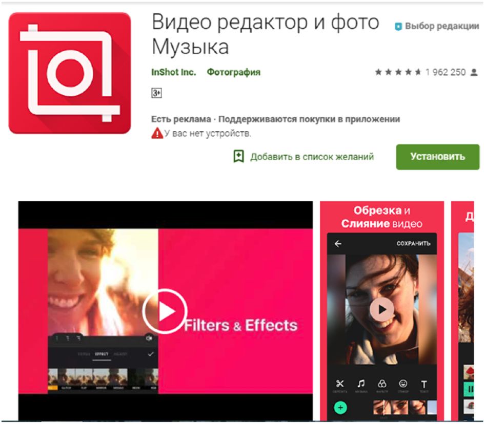 + видео редактор с эффектами