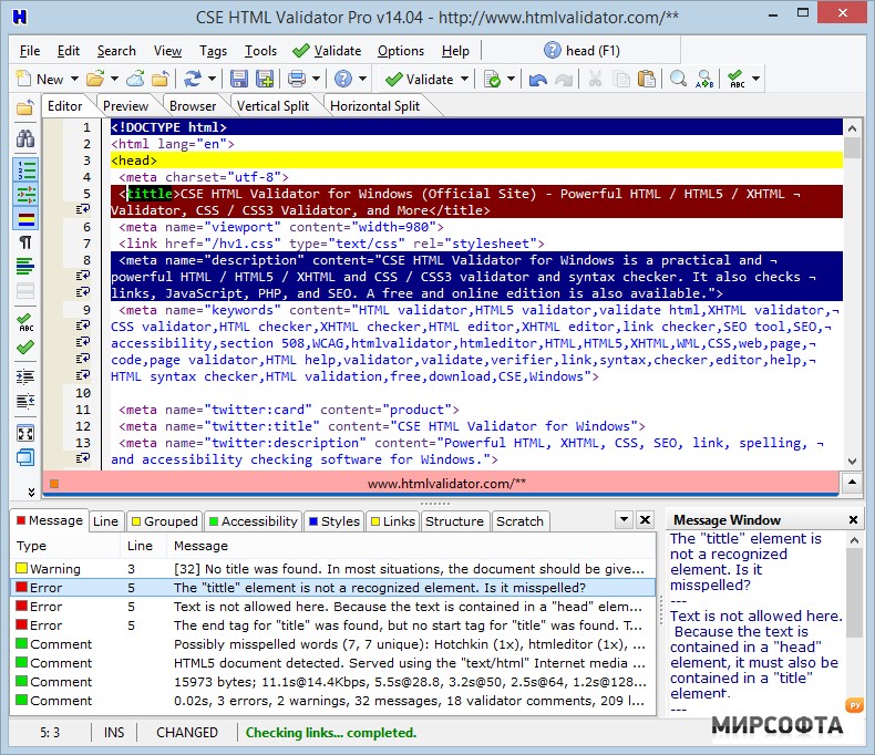anWriter также позволяет просматривать веб-страницы, которые вы закодировали, из приложения и предупреждать вас о любых ошибках благодаря своей консоли ошибок JavaScript.
