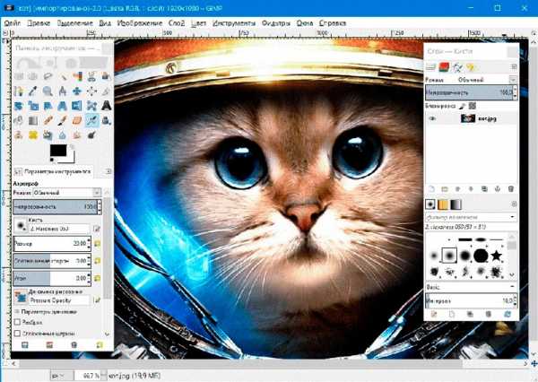 GIMP – кроссплатформенный редактор, позволяющий работать с несколькими слоями одновременно. Внутри него есть множество инструментов для рисования, функции обрезки, клонирования, цветокоррекции и т.д. Поддерживает загрузку сторонних плагинов.