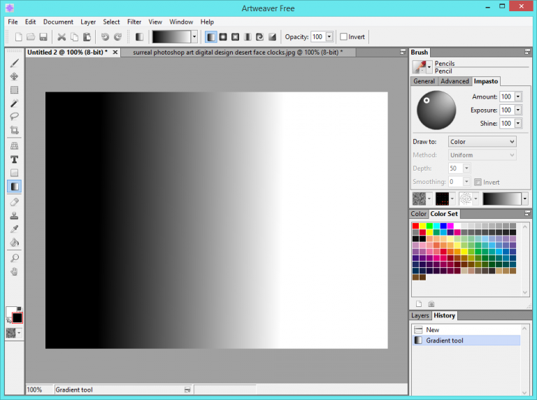 Позиционируется разработчиками как инструмент для рисования. В отличие от Photoshop подходит начинающим художникам. Artweaver содержит достаточно фильтров и текстур, однако главным преимуществом приложения является работа с кистями – меняйте тип (карандаш, ручка, масляная кисть), режим и параметры курсора по своему усмотрению.![]()