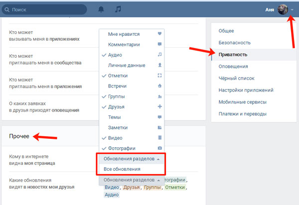- Чтобы вернуть обновления от друзей, то же самое проделайте напротив их фамилий [2]