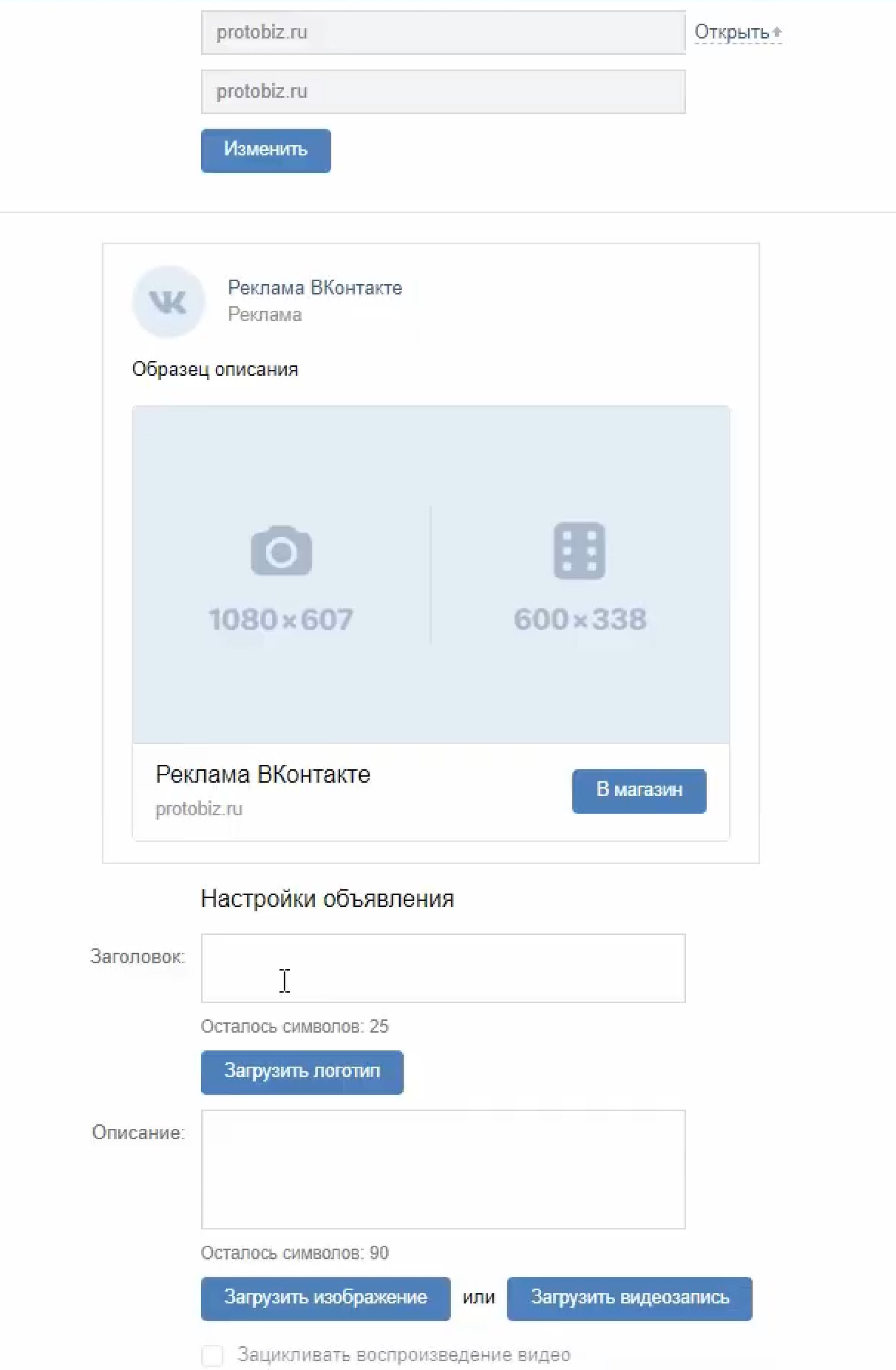 - Настройки рекламы на уровне кампаний и групп объявлений в целом остались неизменны. Действуют те же механизмы, что и при обычном рекламном кабинете ВК.