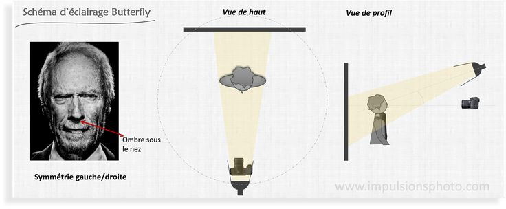 Базовая схема состоит из источника света, повернутого под углом 45 градусов относительно камеры, направленного на субъект и поднятого выше уровня глаз, чтобы свет падал сверху вниз.
