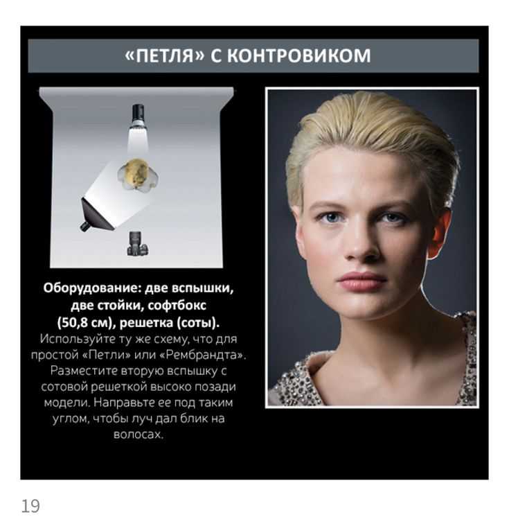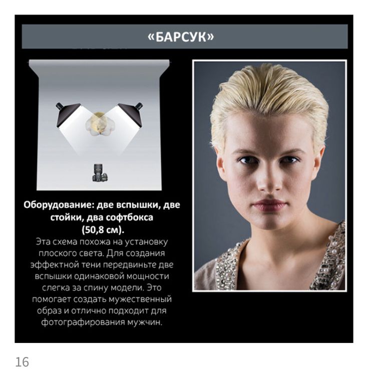 Это одна из самых широко используемых схем освещения наравне с коротким, длинным и раздельным светом, светом «бабочка», «петля» и «ракушка». Если вы только начинаете работать с портретной студийной съемкой (или даже просто используете контролируемый естественный свет, например, большие окна), уже поискав эти термины в сети, вы начнете лучше понимать схемы освещения и способы их создания.
