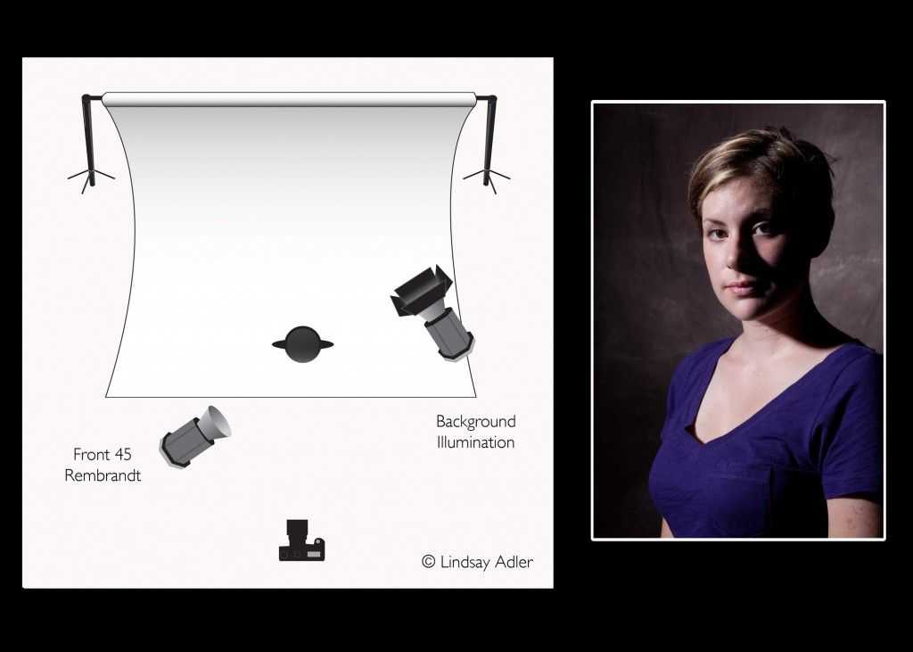 Хотя для создания Рембрандт-освещения необходим только один источник света (возможно, с отражателем), схема эффективна в своей простоте и действенна.